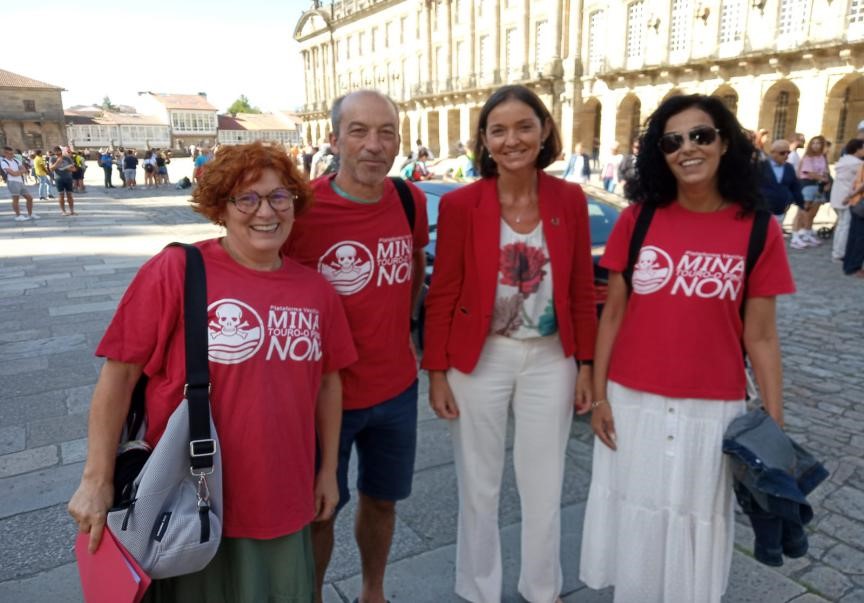 Aproveitando a súa presenza en Compostela, tamén se fixo chegar a nosa loita á Ministra de Industria, Comercio e Turismo Reyes Maroto.