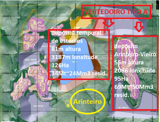 Rematada a explotación das cortas de Vieiro e Arinteiro,  pasarían a utilizar estes ocos mineiros como depósito, ampliando a súa capacidade ao recrecer os ocos cun muro perimetral. Como resultado, outra mole de 55 metros de alto e 2km de longo cunha superficie de 95 Ha e capacidade para 69 millóns de toneladas de residuos mineiros.