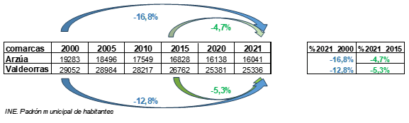 Véndennos as minas e canteiras como unha forma de dinamizar o rural, crear riqueza e asentar poboación. E non é así: nas dúas décadas de 2000 a 2021 a comarca de Arzúa perdeu un 16,8% da súa poboación fronte ao 12,8% de Valdeorras…pero incluso iso está cambiando, ralentizándose no caso de Arzúa e acentúandose no caso de Valdeorras: dende o 2015 ata o 2021 a perda poboacional xa foi máis acusada para Valdeorras que para Arzúa: -5,3% fronte a -4,7%.