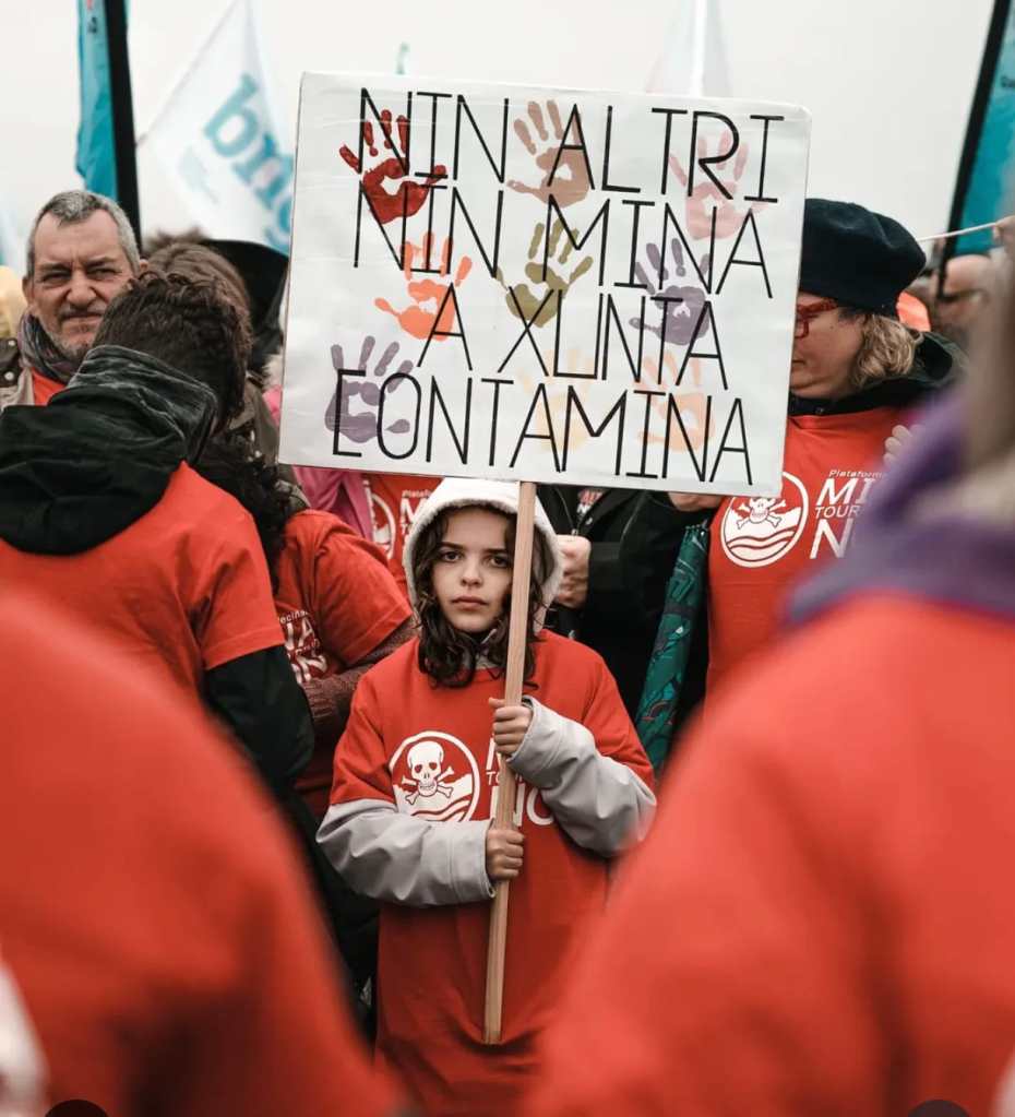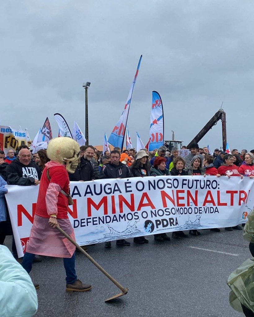 Que nun día frío e chuvioso de marzo miles de persoas puxeran rumbo a esa vila costeira, para amosar a repulsa a dous proxectos industriais que ameazan de cheo o máis valioso que temos, a auga, só se pode calificar como emocionante e esperanzador. É unha lección de orgullo e dignidade que sabendo do atasco que se ía formar para entrar na vila, da choiva que ían ter que soportar, esas miles de persoas prestaran o seu tempo, a súa presencia e a súa voz para berrar alto e claro “Altri non” e “Mina non”. A xente rexeita proxectos industriais que para desenvolverse precisan arrasar co modo de vida de moitas persoas das comarcas afectadas ou da Arousa, que a cambio duns postos de traballo, e dun suposto “progreso”, consumen unha inxente cantidade de recursos naturais. Proxectos que de “estratéxicos” só teñen esa etiqueta que lles permite transitar máis cómodamente a súa andaina administativa.