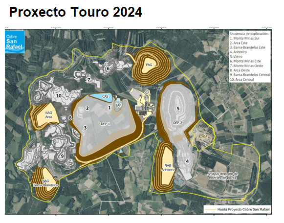 Estes días, sete anos despois, Lavandeira volve dar unha entrevista nun medio que a nós nunca nos publicará: “A España le ha tocado la lotería con la minería” (aquí), é o titular desta vez. Curiosamente a estrutura do artigo é moi similar ao de fai sete anos: apelando ás súas orixes no Carballiño e a súa experiencia en minas polo mundo adiante, esgrime practicamente o mesmo argumentario: a minería moderna é prácticamente infalibe, inocua medioambientalmente e compatible con “todo”. Se acaso fai algunha acotación no caso de Touro: “Presentamos un proyecto en el año 2018 y se nos rechazó en el año 2020 porque posiblemente no supimos explicar bien cómo era nuestro proyecto, que era totalmente nuevo“[…].Tras ese rechazo en el año 2020 hicimos un proyecto totalmente nuevo[…]”….Tanta “novidade” para explicar unhas liñas máis adiante que: “Es un yacimiento a cielo abierto, similar a Riotinto, con una vida prevista de unos 15 años“. Vaites! é unha mina de cobre a ceo aberto cunha explotación convencional de voadura e arranque…coa diferencia de que aquí en Touro nen sequera se transforma o concentrado de cobre, senón que se exporta.